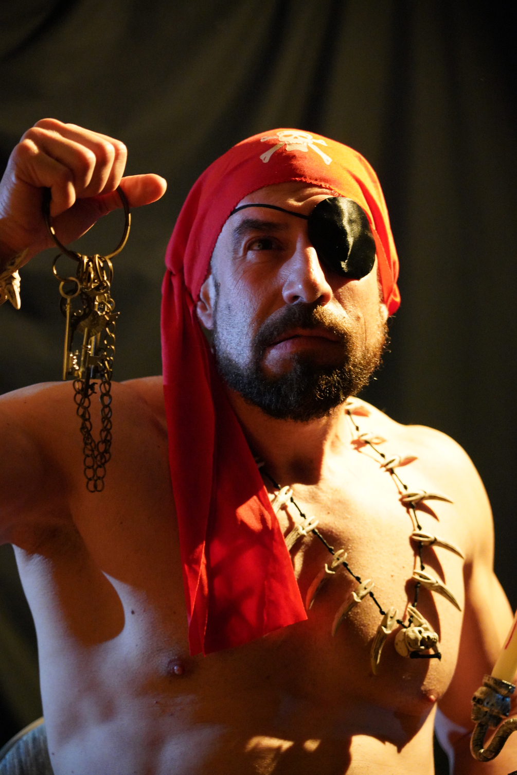 Variety of nude and costume characters: Boxer, Cowboy, Pirate, Sherlock and Nude Warrior